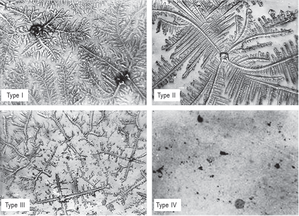- Type I consists of large homogeneous crystals in the form of ferns arranged in an order and branching in the form of a tree.