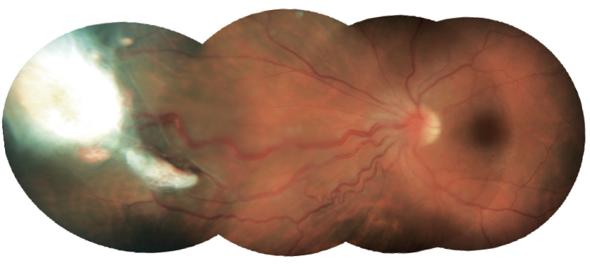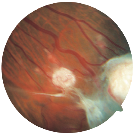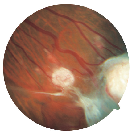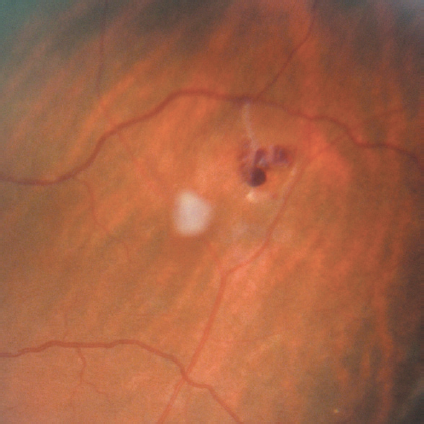 Fig. 3. LE. Peripheral retinal tear with an overlying operculum