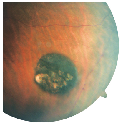 Рис. 4. OS. Врождённая гипертрофия ретинального пигментного эпителия