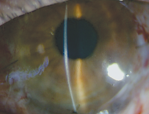 Grade IV – when the head reaches the center of the cornea (projection of the center of the pupil), significant irregular or regular astigmatism (2.5–7.5 diopters) prevails. Visual acuity is reduced to 0.3–0.2.