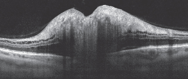 To our mind, GCS have to be administered in a maximally effective, but at the same time safe dosage during first 5 days from the onset of the disease. The objective of such “rescue therapy” consists in a complete and rapid resorption of IRF and of the fluid causing compression of optic nerve fibers in its laminar and prelaminar part.