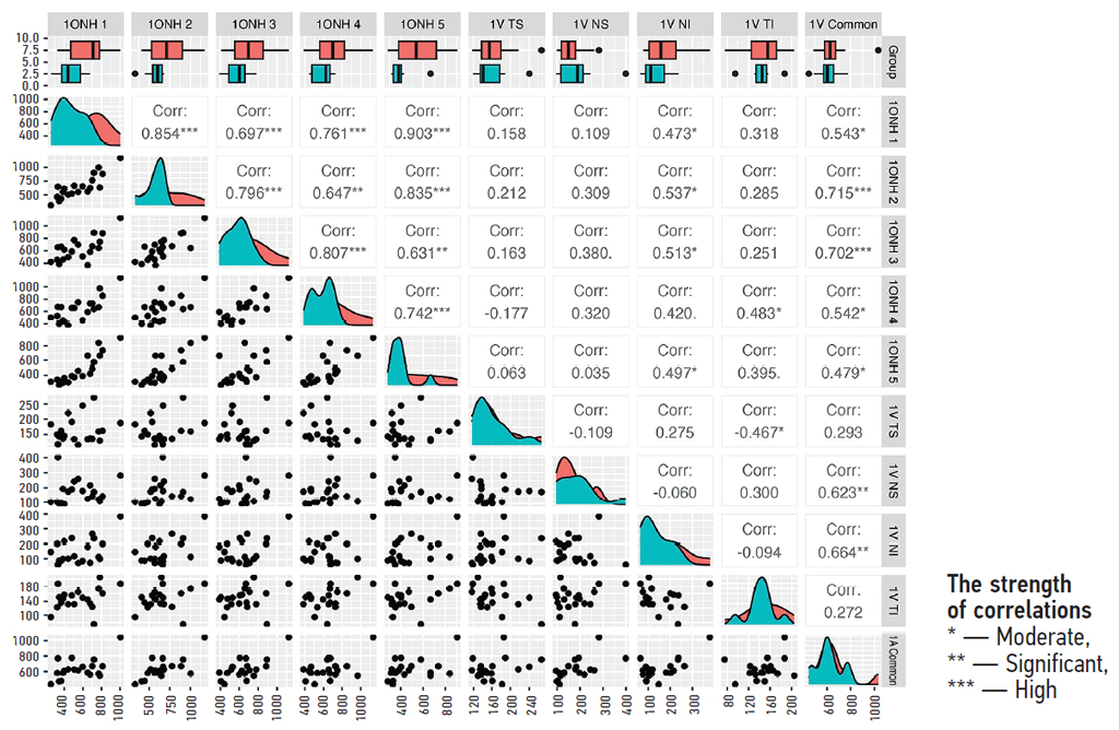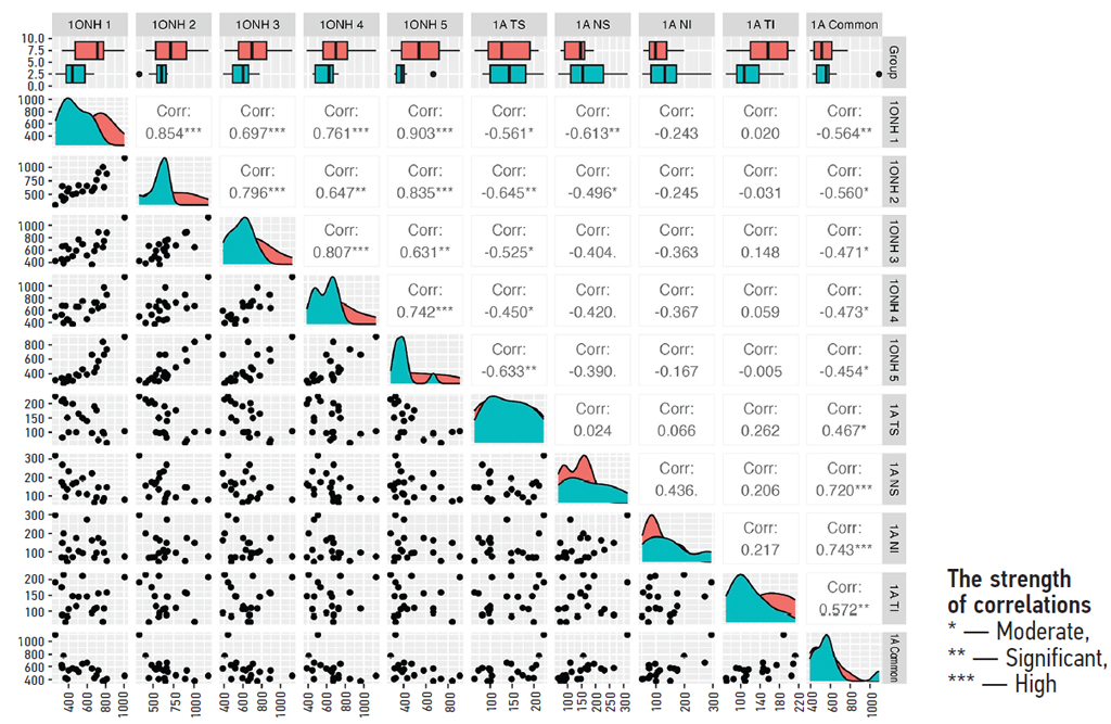 In comparison of groups, the parametric Student’s test with Welch’s correction. The analysis of qualitative features was performed using contingency tables and the Pearson’s chi-squared test. When the assumption failed to comply with expected values in at least one box of the contingency table, the Fischer’s exact test was used. For the analysis, the parametric ANOVA test was also used. Paired comparisons were calculated using the q-value method with Bonferroni correction for multiple comparisons. To determine the strength of correlations between variables, the Spearman’s rank correlation method was used. The significance level for all tests was set as p < 0.05.