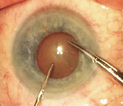 Fig. 1. Anterior lens capsule folds during performing anterior capsulorhexis