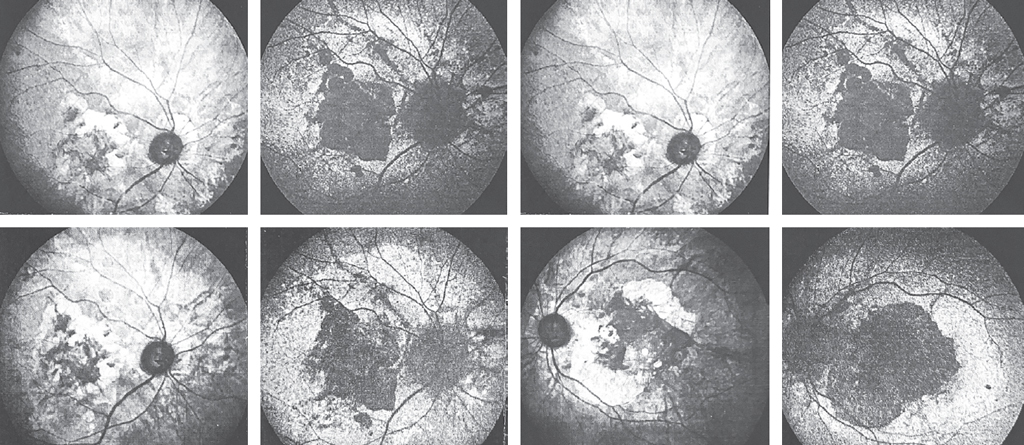 Fig. 1. Ophthalmological examination from 04/19/1989. Both eyes — initial complicated cataract, peripheral chorioretinitis in the scarring phase, retinal degeneration of the “angioid streaks” type