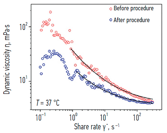 Рис. 3. Репрезентативный пример результата анализа вязкости плазмы крови у пациента с сухой формой возрастной макулярной дегенерации