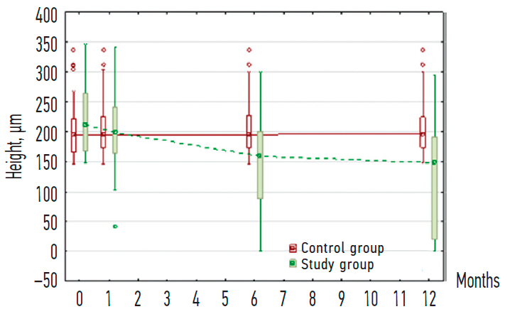 Fig. 5. Dynamics of the drusenoid retinal pigment epithelium detachment height in studied groups