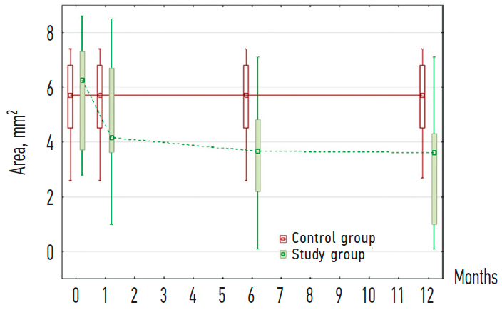 Fig. 6. Dynamics of the drusenoid retinal pigment epithelium detachment area in studied groups