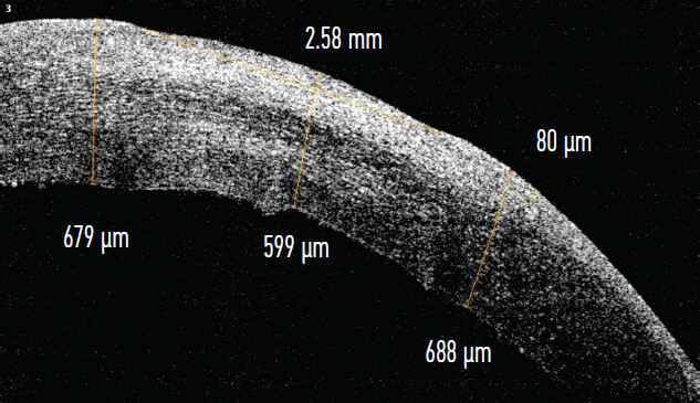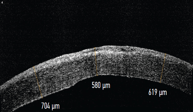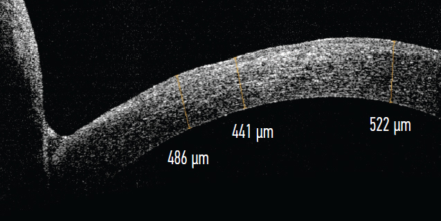 Рис. 3. Снимок оптической когерентной томографии роговицы пациентки О. при поступлении