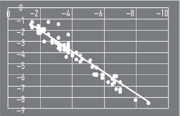 У большинства пациентов в обеих группах анализ предсказуемости рефракционного результата показал высокий уровень соответствия полученной рефракции запланированным показателям (рис. 6, 7). У пациентов с миопией высокой степени наблюдалась тенденция к недокоррекции, что, по нашему мнению, является физиологичным. При операциях ТАФС R2 = 0,944, при операциях ФемтоЛАЗИК R2 = 0,937.