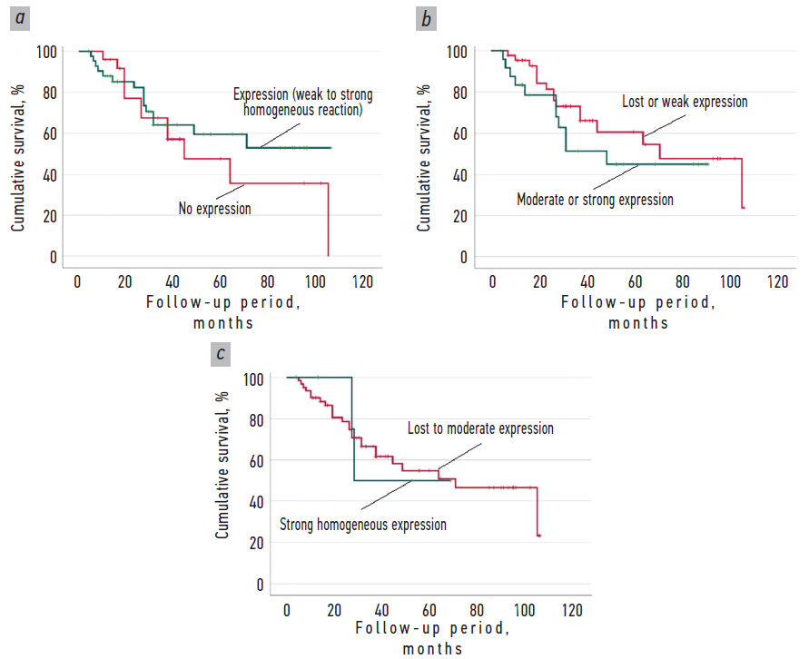IBM SPSS Statistics version 27 (IBM Corp., Armonk, New York, USA) and Microsoft Office Excel 2016 (Microsoft, USA) were used for statistical data processing. Survival during the entire follow-up was analyzed using the Kaplan–Meier method; the significance of differences was assessed using the log-rank test. The Cox proportional hazards model was used to assess the effect of the tested factors on survival.