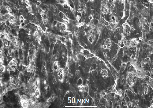 Рис. 6. Сканирующая электронная микроскопия. Эндотелий роговицы. Контрольная группа. Увел. ×500.