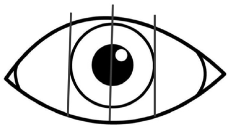 Рис. 2. Схематическое изображение измерений по трём меридианам — ширина глазной щели по проекции зрачка, латерального и медиального лимба.