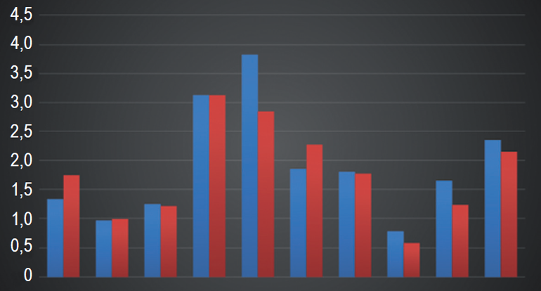 Fig. 2. The value of the corneal asymmetry index before and after CCL with pellucid marginal degeneration of the cornea