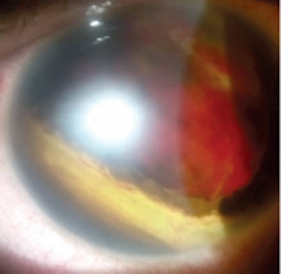 Пациент Ш., 35 лет, 28 марта 2016 г. госпитализирован по скорой помощи с диагнозом: «Контузия левого глазного яблока тяжёлой степени. Тотальная гифема».