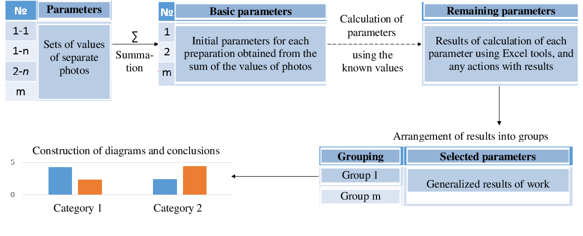Materials and Methods. The whole process from making micropreparations to the end of their full analysis was divided into 4 stages: photographing the entire area of micropreparations using a video eyepiece microscope, counting histomorphological elements in the photos, construction of a computer model, analysis of the obtained data.