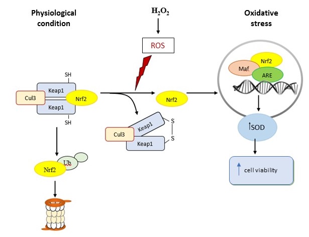 CONCLUSION: Hydrogen peroxide induces the nuclear translocation of Nrf2, which promotes activation of antioxidant enzyme SOD and preserves viability of cells of OS conditions in vitro.