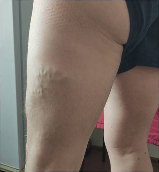On a follow-up examination two years later, no varicose veins on the posterolateral surface of the thigh were found.