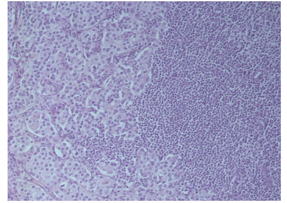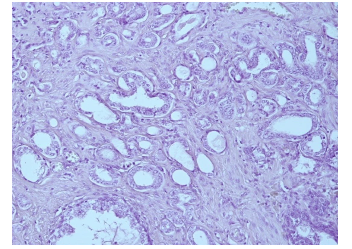 Fig. 1. Acinaradenocarcinoma of prostate. Gleason score 4. Staining with hematoxylin and eosin, x200