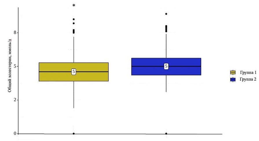 3. Fig. 2. Total blood serum cholesterol (Me (Q1–Q3)) in groups 1 (sudden death) and 2 (comparison group).