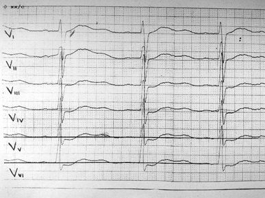 Fig. 1. V1-V6 leads of ECG of female patient S. with evident hypokalemia