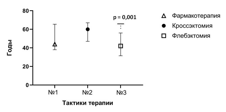 - - 11 patients of pharmacotherapy group were recommended crossectomy, 8 patients — phlebectomy, for 10 patients the used treatment tactics coincided with the recommended one.