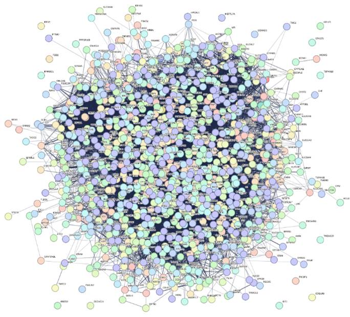 The obtained networks have been analyzed using Cytoscape ver. 3.9.1; in result, 20 most significant genes were identified (Figure 3). Then, their functional enrichment in the biological processes and pathways was analyzed according to Kyoto Encyclopedia of Genes and Genomes, KEGG (Figure 4).
