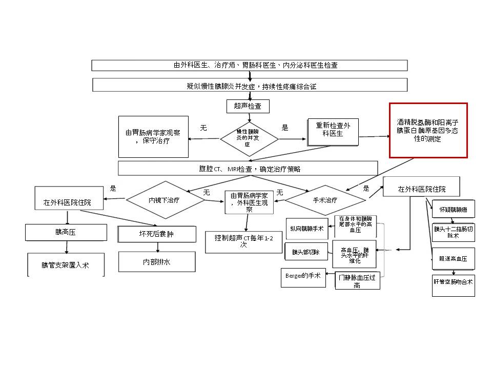 图 1基因多态性分析在慢性胰腺炎诊断算法中的位置(突出显示)。