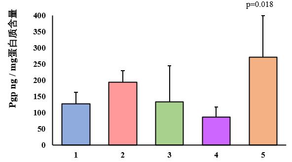 2. Fig. 1. The amount of Pgp in Caco-2 line cells on exposure to progesterone (M±SD, ng/mg of protein)