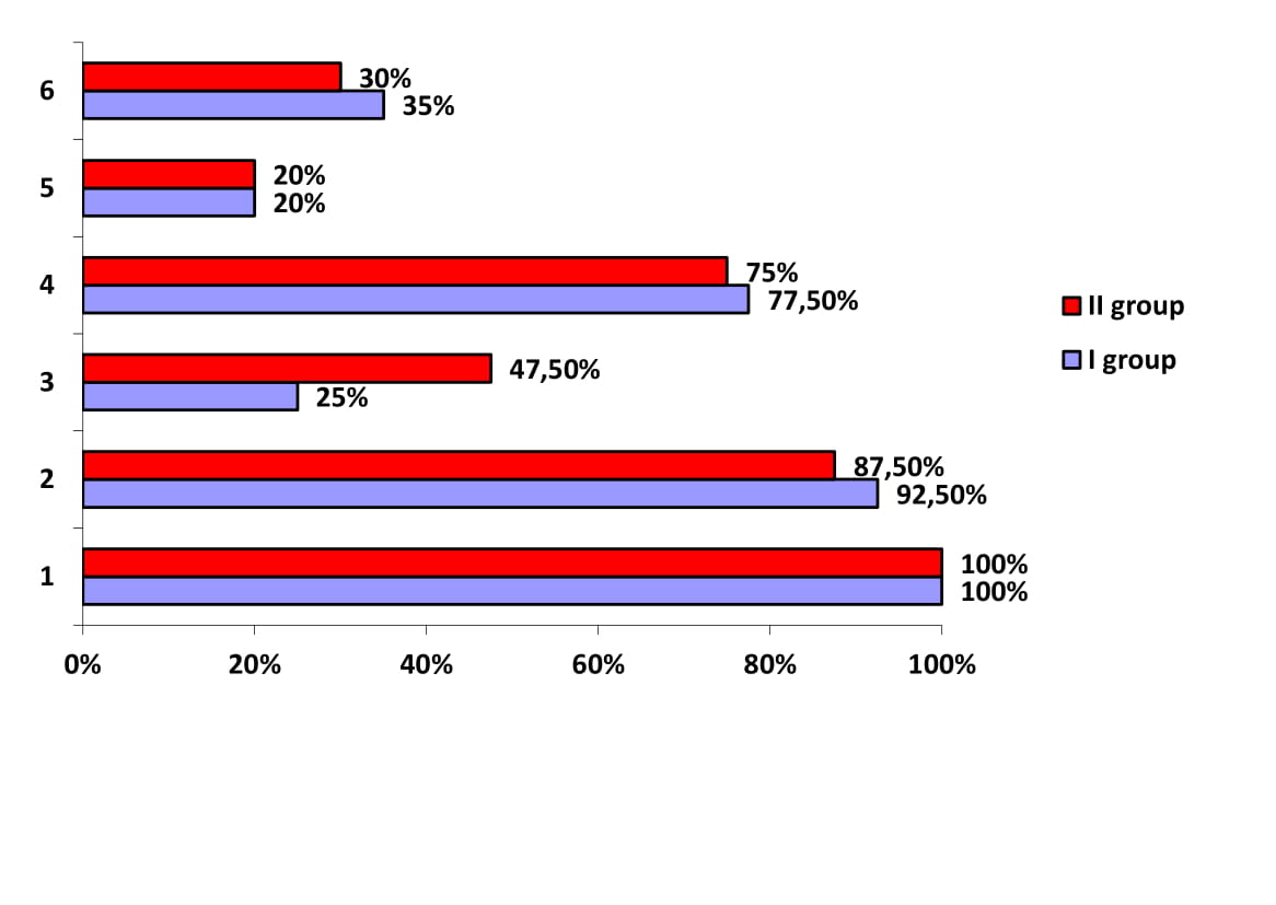 Thus, in both groups positive dynamics was recorded that was more expressed in I group (Table 1).