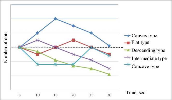 5. Concave type – initial decrease in the maximum speed, which later increases for a short-term to the initial level. NS type – medi-um-weak.