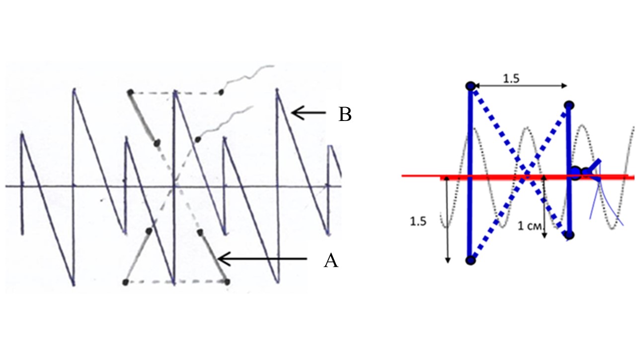 In the upper part, the aponeurosis was sutured with a traditional thread with a checker-wise reinforcing stitches (Patent for invention RUS 2644846 02/14/2018) that was more reliable than interrupted and twisted stitches, reinforcing suture using Braided Ftorest 0 thread (Volot, Russia) was applied, and a continuous suture with checker-wise stitches with polypropylene monofilament No 2/0 (Volot, Russia) was also used [16] (Figure 2).