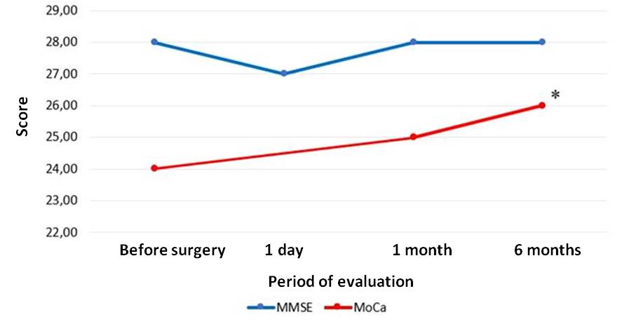 - Montreal Cognitive Assessment (MoCA). Evaluation of the following parameters: visual-constructive/executive skills, naming, memory, attention, speech, abstraction, delayed reproduction, orientation. Periods: before surgery, after 1 month, 6 months;
