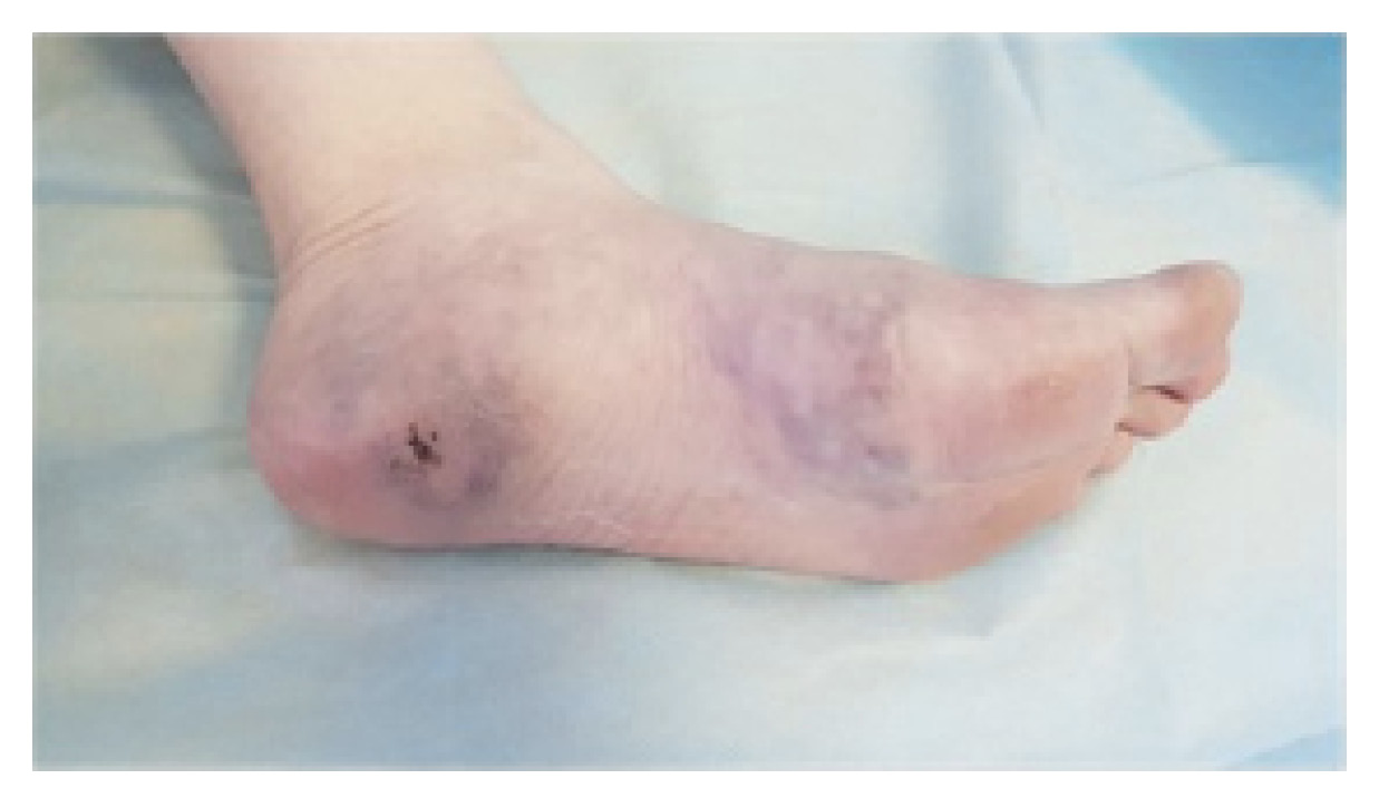 大多数情况下,注射硬化剂后立即出现注射区剧烈疼痛,并在手术完成时消退。 之后,用低伸长率的绷带进行弹性压缩(图 3)。