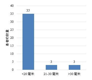 图 1静脉腔的发生率取决于研究组患者的大小(n=41)。
