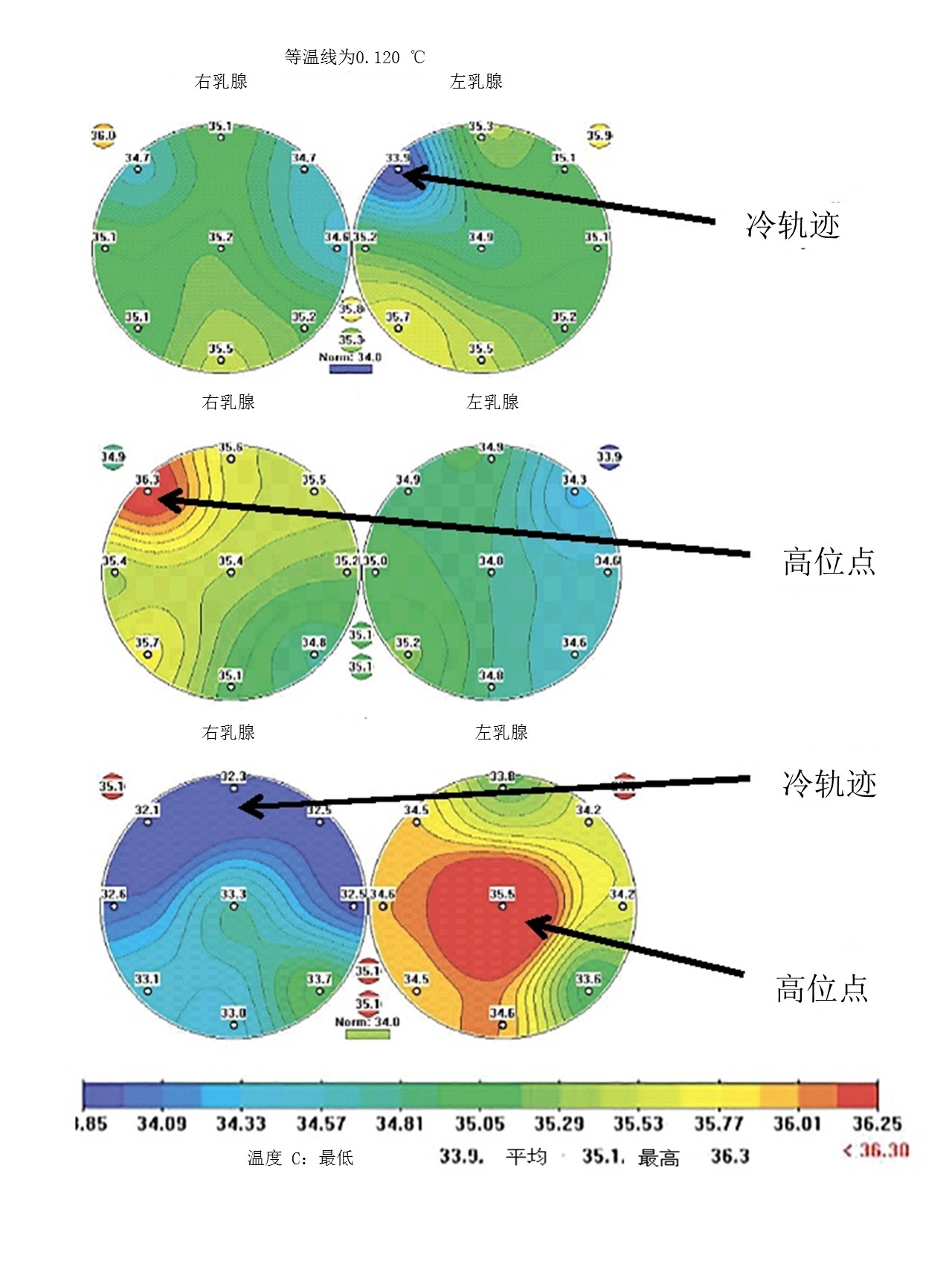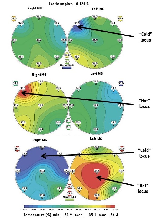 Thus, diffused (locally spread) forms of BC are presented in the forms of thermograms with the most significant spread and large areas of maximal and minimal temperatures.