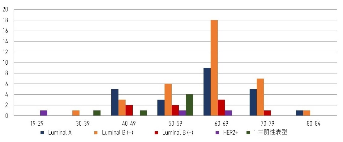 Fig. 1. Relationship of BC phenotype (n) with age (years).
