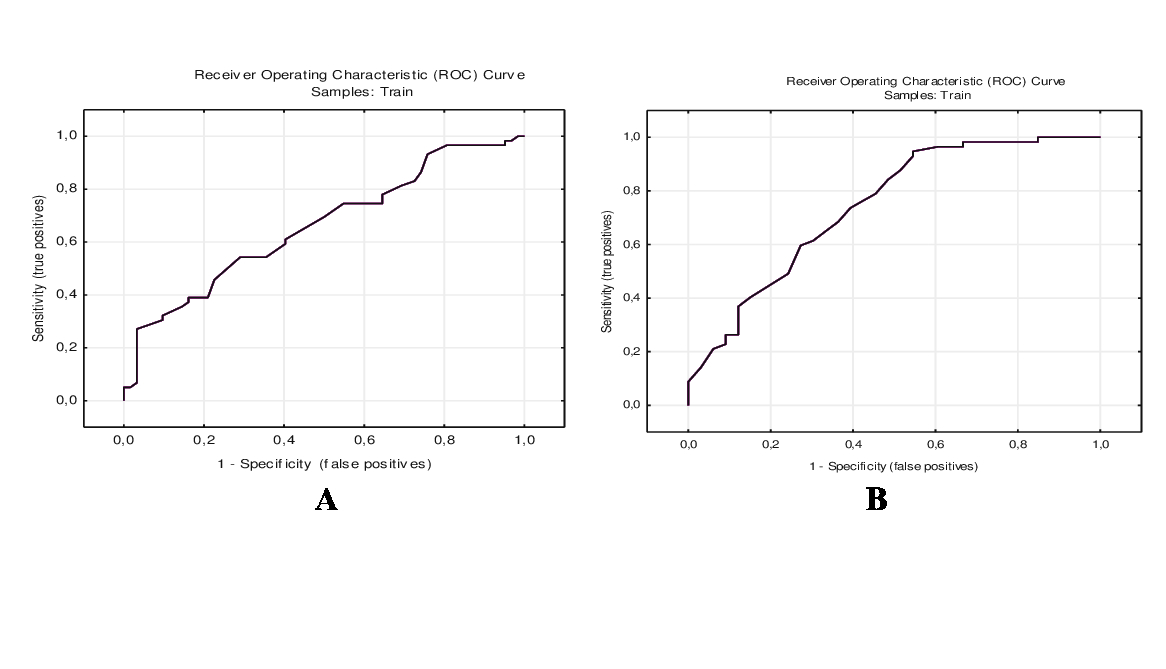 Fig. 3. ROC-curves for the slope of phase III (А – BA, B – severe BA)