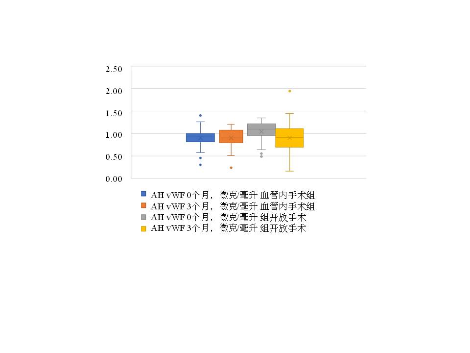有创干预前后3个月血管内和开放手术组AH vWF所示图1。