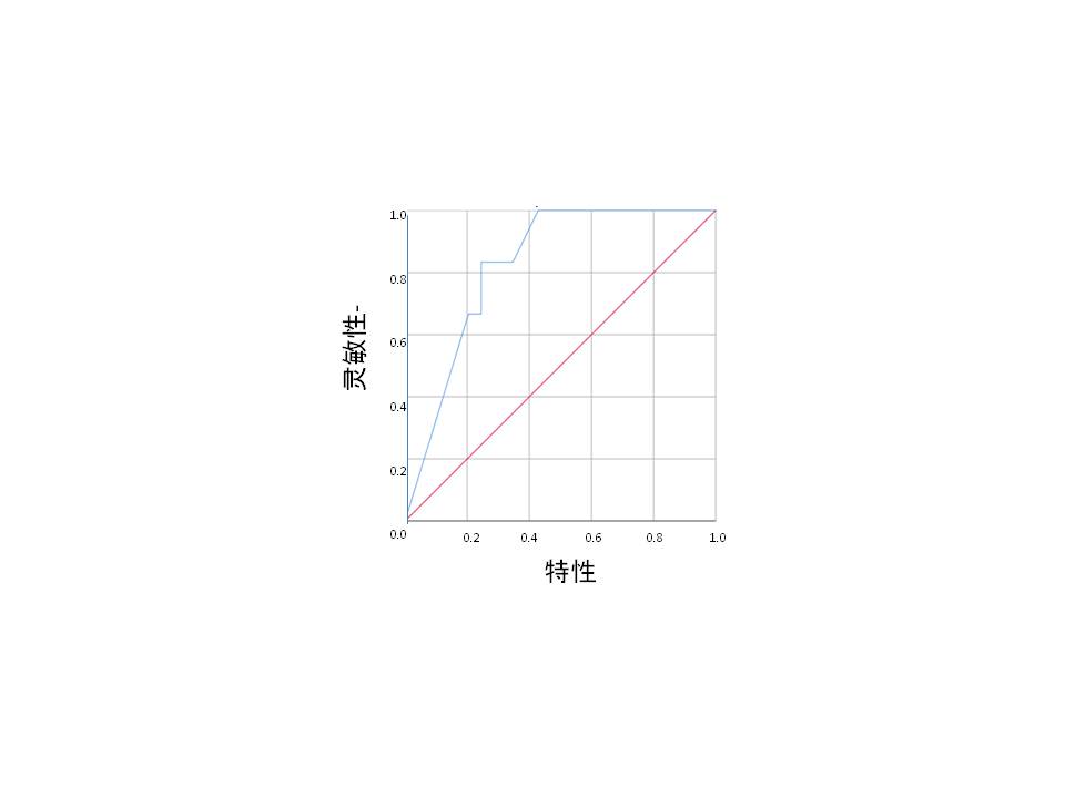 图 3血管内手术组中 vWF 活动与死亡发展之间关系的预测模型中的 ROC 曲线。
