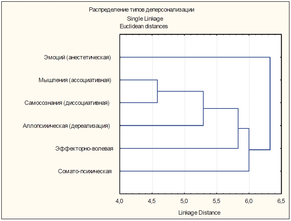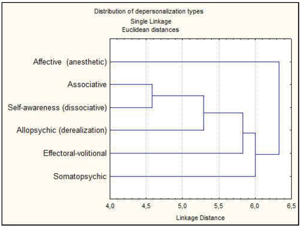 Cluster analysis (Fig. 1) confirmed the correctness of our selection of types of depersonalization.