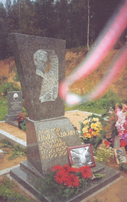 В конце 90-х гг. состояние здоровья Э.К. Цыбулькина значительно ухудшилось, но дни, когда он чувствовал себя лучше, были посвящены творческой активности, он был заразительным оптимистом, философом, взиравшим на все трудности и препоны судьбы свысока. Эдуард Кузьмич имел очень сильный характер, но металлическая твердость и непреклонная требовательность проявлялись только к себе. В последние годы каждый рабочий день был подвигом. Превозмогая болезнь, Эдуард Кузьмич заставлял себя вставать и ехать для проведения консультативной работы, где его ждут коллеги, больные дети, которым он может помочь, а это даст силы работать далеко за полночь, а утром снова подняться, чтобы начать новый день. Он испытывал острую потребность быть нужным коллегам, служить больным детям. «Спасибо, коллеги!» — всегда было последним словом после каждой лекции и консультации больного. Даже после смерти он выражает свою искреннюю благодарность родным и близким, посетившем его. На фотографии, которая была сделана на его могиле (рис. 2), четко виден светло-розовый блик, при этом на момент съемки он отсутствовал, поэтому этот феномен можно рассматривать как незримое присутствие Эдуарда Кузьмича Цыбулькина рядом с нами и его своеобразное «Спасибо, коллеги!».