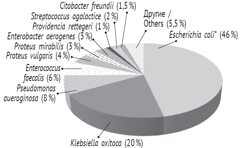 Рис. 2. Структура возбудителей, вызывающих пиелонефрит, у детей без дисплазии соединительной ткани