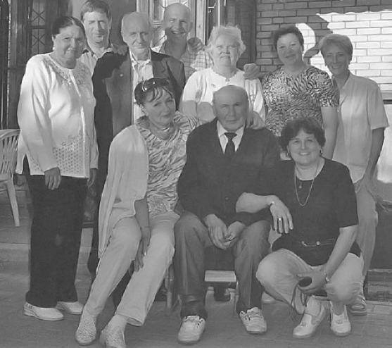 Fig. 7. At the Romanchishen’s country house, 2000. In the first row from left to right – Galia Fettyakhovna, Professor Fettyah Halimovich and Adillia Fettyakhovna Kutusheva; in the second – Maria Andreevna Kutusheva, Professor Igor Alexandrovich Eryukhin (Military Medical Academy), Svetlana Nikolaevna Eryukhina, Larisa Alekseevna Koroleva, Elena Sergeevna Romanchishena; in the third – Professor Mikhail Pavlovich Korolev and Professor Anatoly Filippovich Romanchishen
