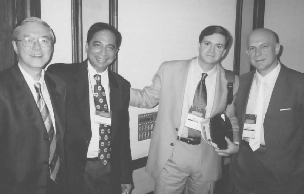 Fig. 8. Speakers at the Harvard Thyroid and Parathyroid Glands Surgery course Boston, 2002. From left to right: S.J. Kong, Ashok Shaha, Gregory W. Randolph, Anatoly F. Romanchishen