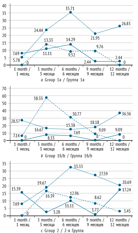 12 months / месяца | 20 (48.78) | 8 (19.51) | 9 (21.95) | 4 (9.76) | |