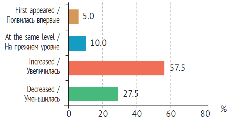 Fig. 1. Distribution of women in accordance with the dynamics of supraventricular extrasystole after induction of superovulation, %
