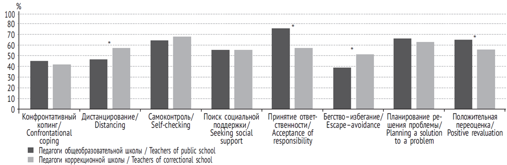 Рис. 2. Копинг-стратегии педагогов. Уровень статистической значимости: * p ≤ 0,05