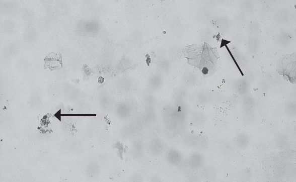 Диагноз ВИЧ-инфекция у детей устанавливали согласно Клиническим рекомендациям МЗ РФ 2017 [4]. Качественную полимеразную цепную реакцию (ПЦР) ДНК ВИЧ проводили при помощи отечественной тест-системы «Ампли Сенс ДНК-ВИЧ-96 М» и коммерческой тест-системы Amplicor HIV-1 Monitor test фирмы Roche. У детей в возрасте старше 18 мес. ВИЧ-инфекция подтверждена выявлением специфических антител к ВИЧ при серологическом исследовании крови в реакциях ИФА и иммуноблота. Для проведения ИГЦХ исследования были обследованы 10 ВИЧ-инфицированных детей, обратившихся в центр по профилактике и борьбе со СПИД на повторные обследования. На момент забора анализа все находились на АРВТ. Отбор пациентов проходил методом случайной выборки. Их возраст варьировал от 3 до 16 лет. Материал для исследования на наличие антигена ВИЧ-1 р24 отбирали с задней стенки носоглотки с помощью ватных тампонов на палочке (Unicorn med, Китай) и на небных миндалинах, не касаясь языка. Мазок наносили на стекла (Microscope slides, Yancheng Huida Medical Instruments Co, Китай) и оставляли на 3–5 мин при комнатной температуре сушиться. Затем все стекла перед тем, как их доставлять в лабораторию, были фиксированы в спирте. В лаборатории препараты заново фиксировали в этаноле на 3–5 мин, далее промывали в фосфатном буфере в течение 5 мин. Затем обрабатывали 3 % раствором перекиси водорода в течение 15 мин, промывали в двух порциях буферного раствора по 5 мин. Далее наносили антитела, и препараты нагревали в водяной бане в термостате 45 мин. После нагрева препараты оставляли остыть при комнатной температуре в течение 10 мин, после чего их промывали в буферном растворе. Перед инициацией системой детекции препараты промывали двукратно в буферном растворе. На этапе детекции сначала наносили биотин на мазки и выдерживали при комнатной температуре в течение 20 мин. После двукратной промывки в буферном растворе наносили стрептовидин и препараты оставляли на 30 мин, после чего промывали в буферном растворе. Затем красили метиленовой синькой для достижения более выраженного контура искомого объекта. Положительный результат получали при окрашивании продукта реакции в коричневый цвет [30].