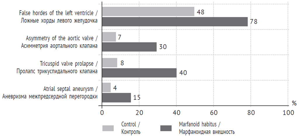 Fig. 2. Prevalence of small heart anomalies in young people with marfanoid habitus / Рис. 2. Распространенность малых аномалий сердца у лиц молодого возраста с марфаноидной внешностью