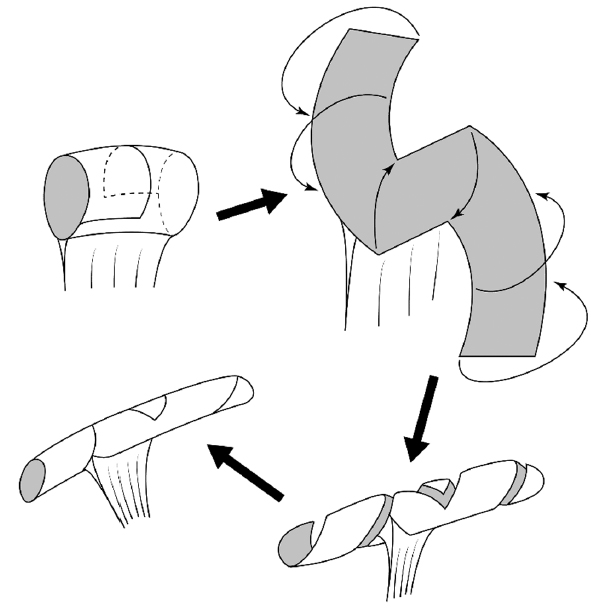 The most commonly used surgical techniques include longitudinal intestinal lengthening and tailoring (LILT) and serial transverse enteroplasty (STEP) [17]. Recently, STEP has begun to replace LILT [21, 27], likely due to the technical complexity of LILT, despite STEP’s less efficient use of the available intestinal wall. While both methods are reliable and reproducible, they have technical limitations, including specific requirements for the initial configuration of the intestinal segment [16, 20]. Alternative approaches to modifying a dilated intestine are either limited to small clinical case series (e.g., spiral intestinal lengthening and tailoring [SILT] [13], double barrel enteroplasty [25], transverse flap duodenoplasty [8]) or remain experimental (e.g., distraction enterogenesis [15, 18, 23]) or theoretical (e.g., spiral valve formation [24]). In the context of autologous intestinal reconstruction surgery [9, 22, 28], the Yang–Monti enteroplasty technique, particularly in its Casale modification, merits consideration [12]. This method, widely used in urology, involves incising the anti-mesenteric edge of a small intestinal segment with a patterned incision, followed by re-tubularization at an angle to the mesenteric attachment line. The resulting segment is both longer and narrower (Figure 1).